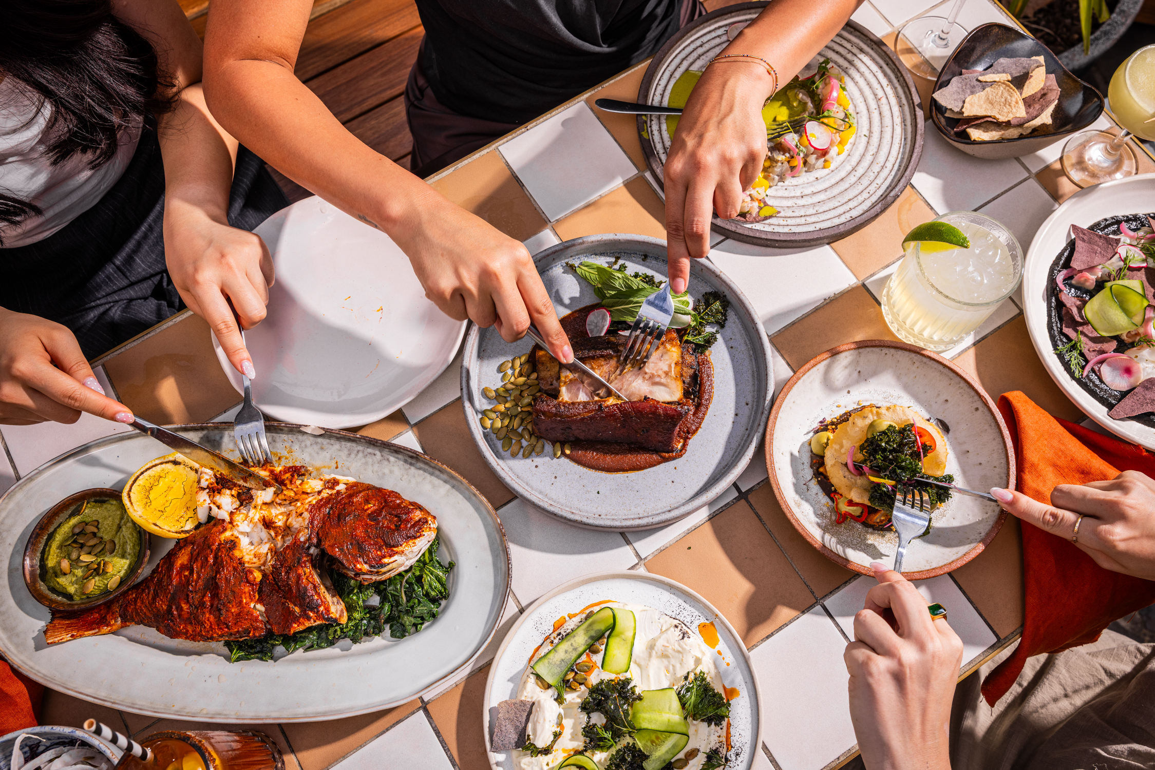 Our menu tells the story of the Yucatán coast — vibrant, soulful and made for sharing. Executive Chef Roberto García draws on his travels and heritage to craft dishes that balance fire, freshness and finesse. This is food and drink made for connection, a table shared.