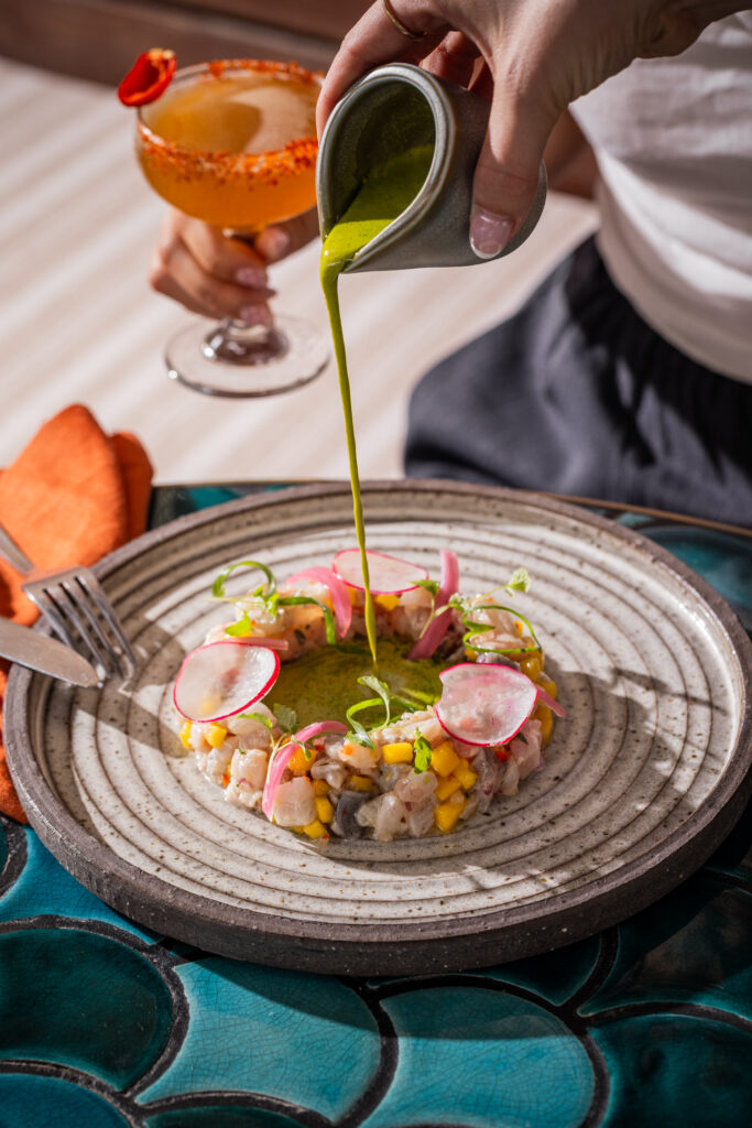 Add our kibis yucatecos, golden bulgur and beef croquettes with mint-habanero dressing, or our ceviche yucateco with barramundi dressed in coconut milk, passionfruit, citrus, habanero, and crunchy maiz crackling.